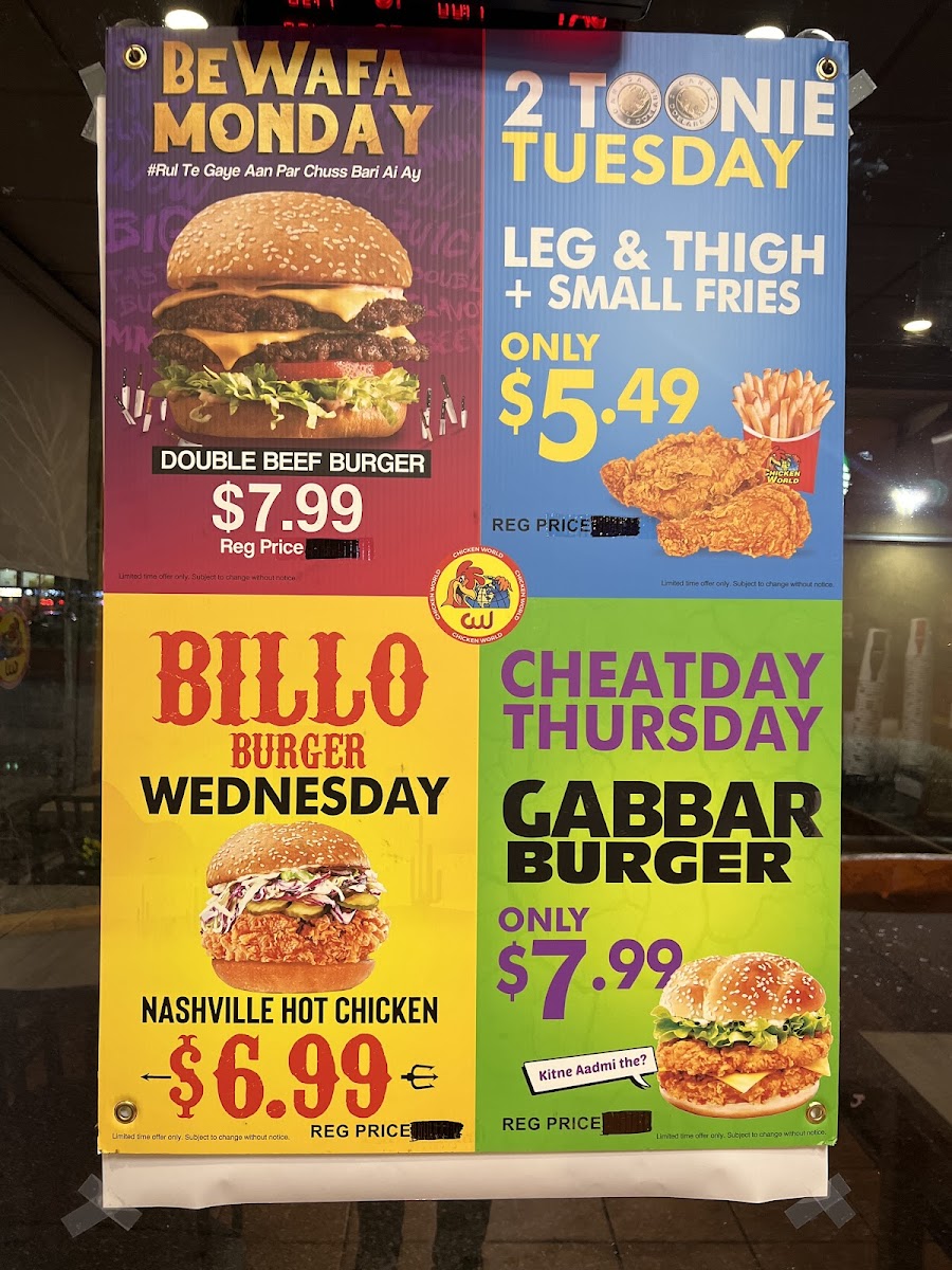 It’s not very often we come across restaurants like chicken world. Their spread of menu is fantastic and comes with a unique flavour of patties. I’m a huge fan of their veggie burger and peri peri fries. Not to forget the amazing service from Ash!! She deserves a raise for sure!!